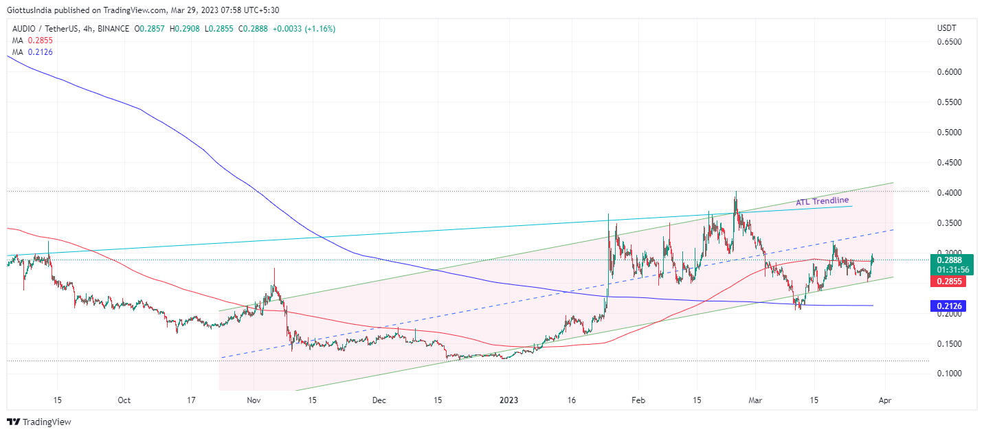 Tech View By Giottus Crypto Platform AUDIO, of decentralised streaming platform Audius, has taken quite a beating from its all-time-high of $4 in 2021. Today, it trades at nearly $0.29 - barely above its 50-day moving average of $0.28. It is still struggling to maintain its recent uptrend from December, having risen by more than 100% from its low of $0.12. On its way though, it has failed a breakout from a parallel channel it has occupied over the last few months. It also failed to reclaim a higher level which acted as support on multiple occasions in 2022.