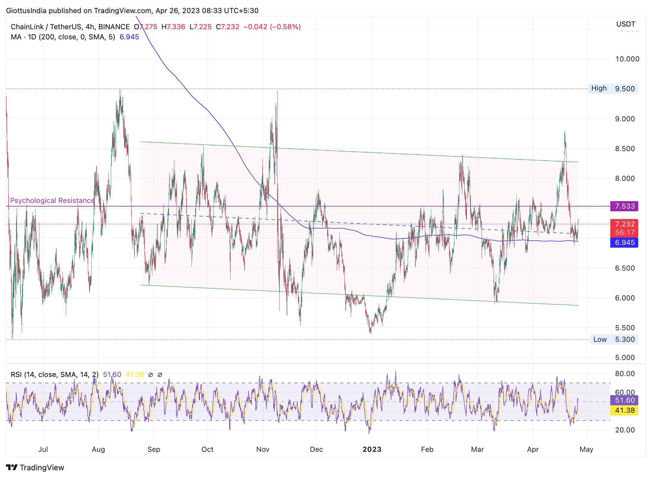 It is now targeting the $7.5 psychological resistance, which it has not held for long periods since August 2022. Should that level be reclaimed, we could see an attempt to the top of the parallel channel at $8.1-8.2. However, in case of rejections, there may be a retest of the 200-day EMA at $6.95, beyond which we can look at lower targets of $6.6 and $6.5. Major levels Support: $6.95, $6.6, $6.5 Resistance: $7.5, $8.1(Views and recommendations given in this section are the analysts' own and do not represent those of Business Today. Please consult your financial adviser before taking any position in the asset/s mentioned.)