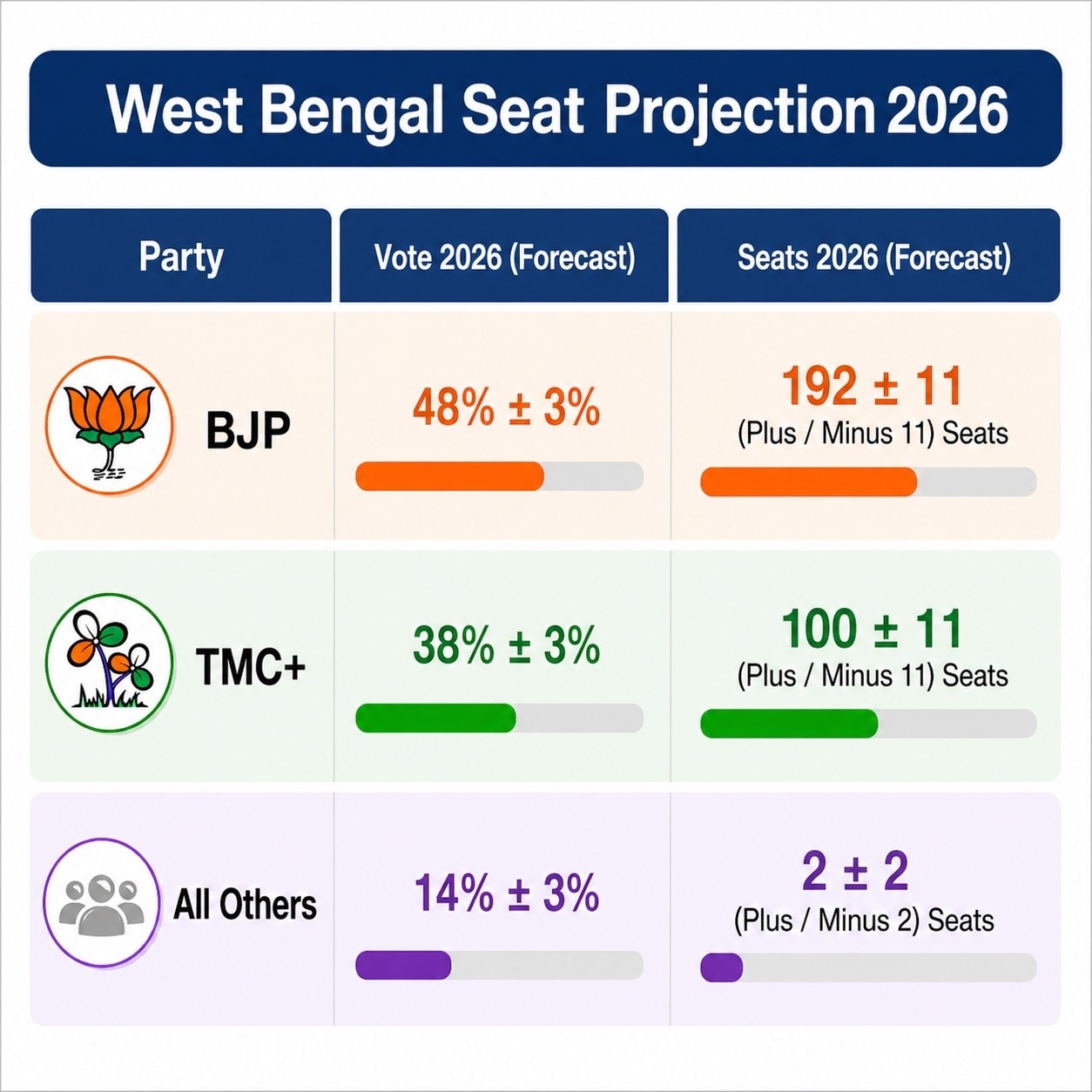 If the projection holds, the BJP would form a government in West Bengal for the first time, marking a historic breakthrough in a state long dominated by regional and Left politics.