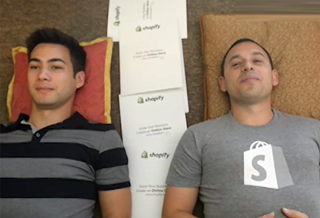 Photo editor Vivan Mehra talks to Brennan Loh, head of business development and Harley Finkelstein, chief platform officer at Shopify. Finkelstein says Shopify is easy to use and inexpensive. <br /><br />