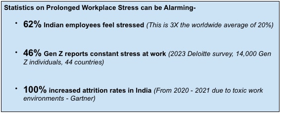 Creating a sustainable work culture of mental wellness doesn't require sweeping changes. Small, consistent efforts - such as promoting workplace wellness, sleep management at work, and Corporate Wellness programs - are the way to go. Besides traditional solutions, Corporations are also exploring AI in wellness assistive solutions that are technology-enabled, reasonably priced as well as safe, and easy to use for both young and experienced professionals. By proactively addressing workplace stress, job stress impact, stress-related health problems, companies are cultivating a supportive environment that fosters employee well-being. In the long run, this not only enhances productivity through wellness but also ensures a healthier management of stress factors at work, more resilient workforce capable of handling the pressures of today’s demanding work culture.