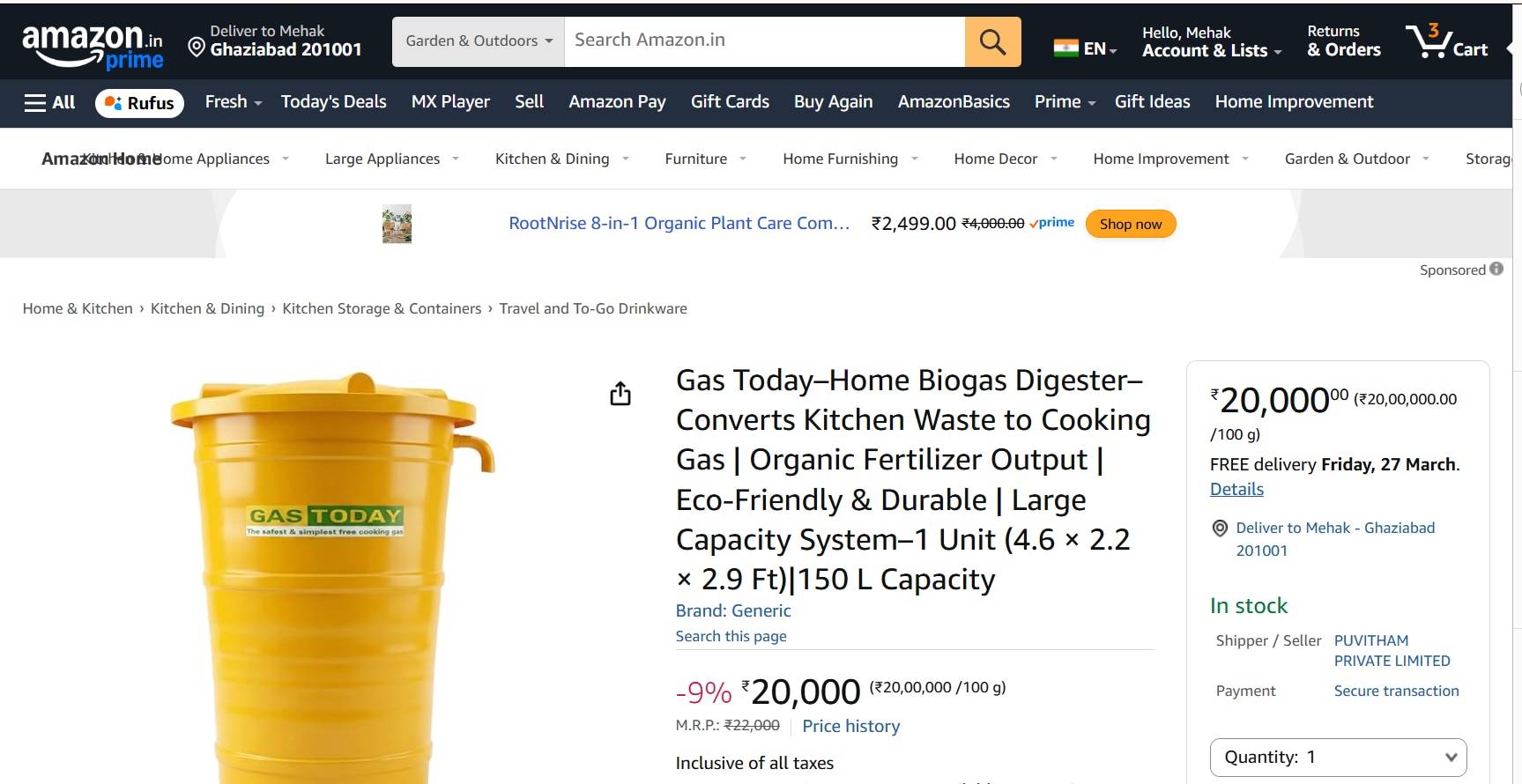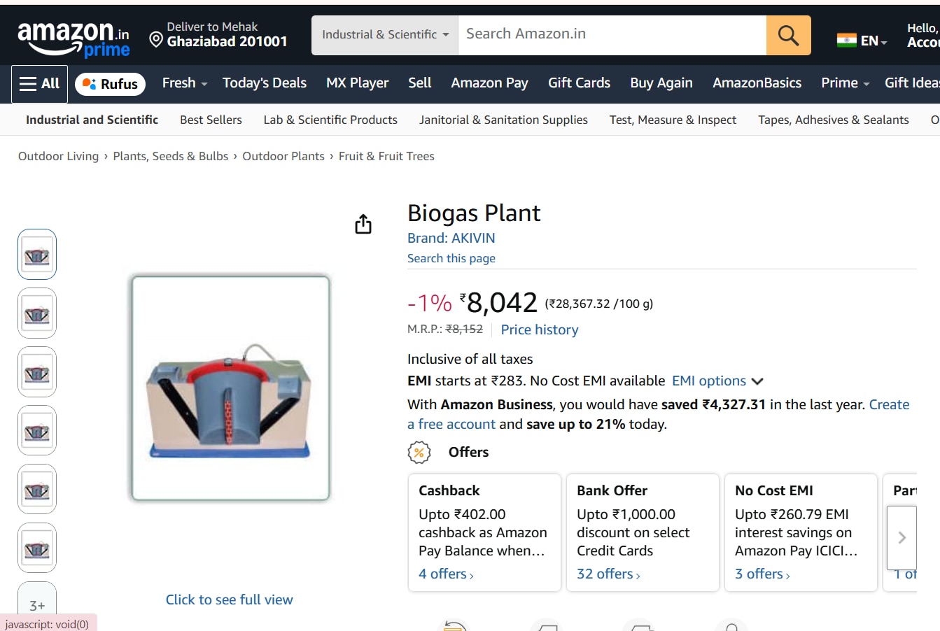 Portable biogas plant prices in India vary across platforms, offering options for different budgets. On Amazon, home biogas digesters are priced between ₹8,000 and ₹20,000 for small-capacity units, making them accessible for households.
