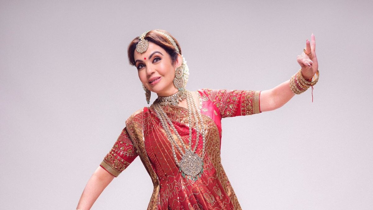 Mother of the groom Nita Ambani looked beautiful in a cream and golden-hued Kanchipuram saree, which featured zari embroidery with a golden scalloped border and polki jewellery at the event. The sari has been handcrafted by South Indian weavers. Mukesh Ambani, on the other hand, wore a cream coloured jodhpuri kurta with pyjama.