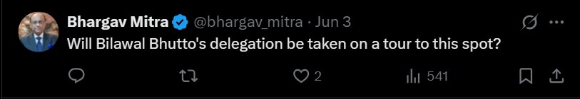 "Will Bilawal Bhutto's delegation be taken on a tour to this spot?" a user asked.