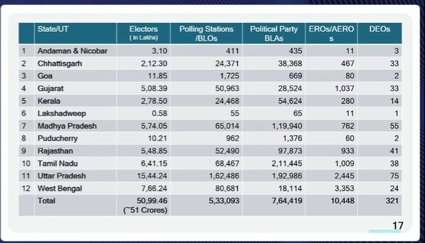 List of the states/UTs where phase-2 of pan-India SIR will take place
