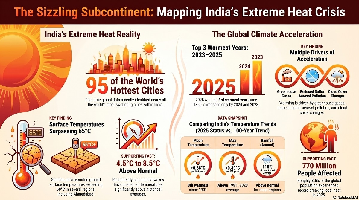 Weather experts point to a combination of factors behind India’s dominance on the global heat map. A strong high-pressure system over the region has suppressed cloud formation, allowing uninterrupted solar radiation to heat the land surface. Additionally, dry winds from desert regions have further intensified the heat.