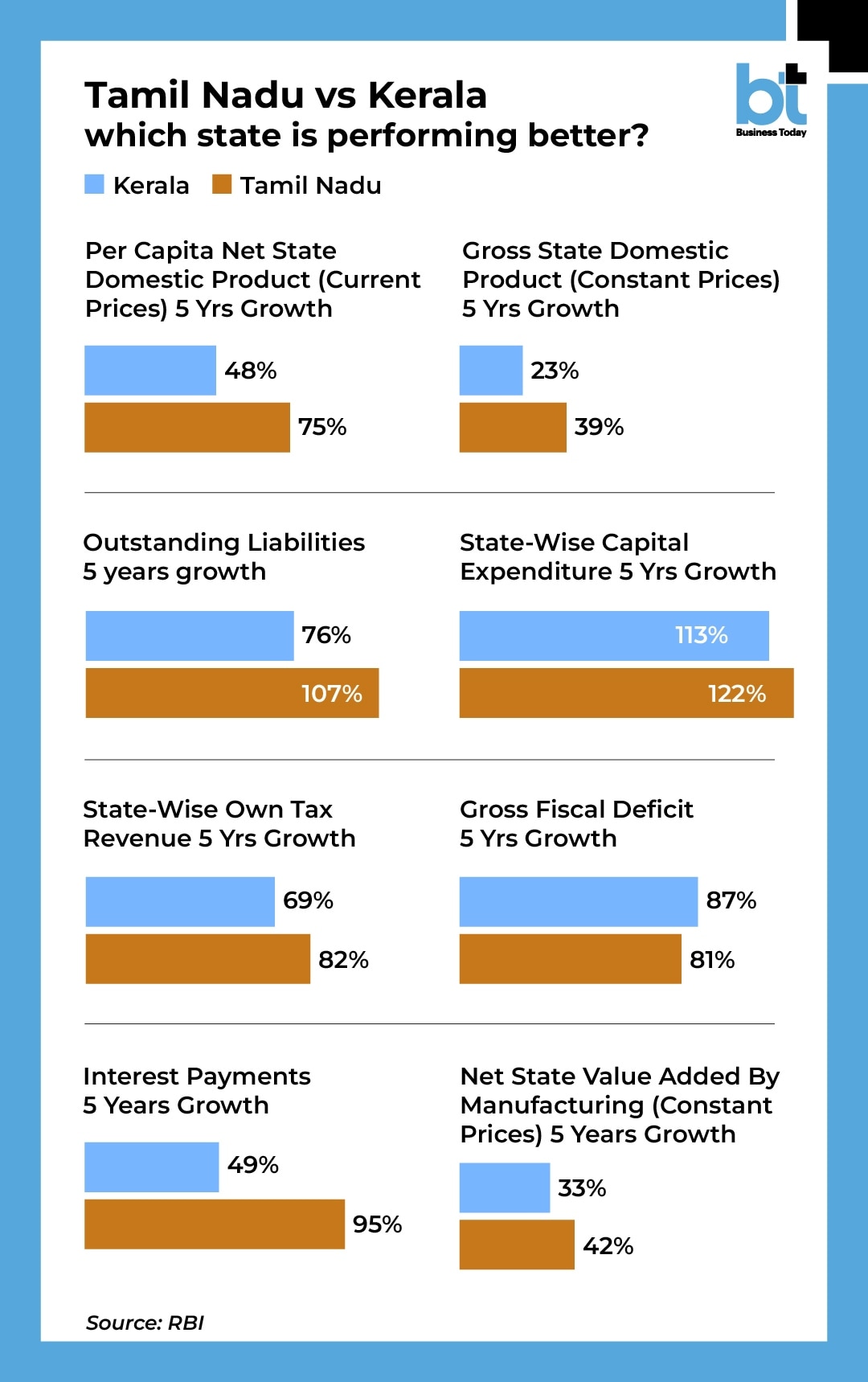 Data from the Reserve Bank of India (RBI) provides a clear picture of how these economies have evolved over the past five years. From economic growth and per capita income to government spending and rising debt, the numbers tell a story of growing economies, infrastructure development, higher public investment and increasing fiscal pressures, setting the stage for a closely watched political and economic contest ahead of the elections.