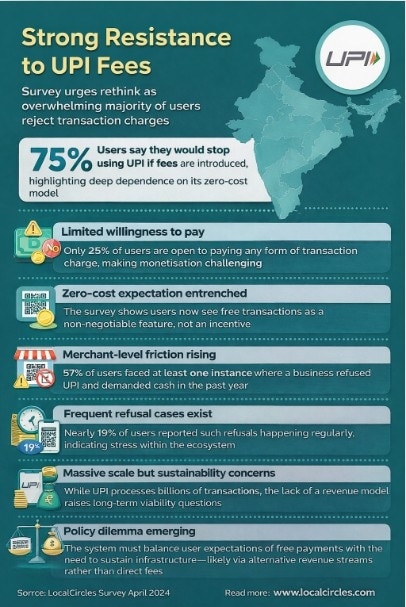UPI, launched in 2016, has scaled into the backbone of India’s financial ecosystem. Whether you are splitting bills, paying rent, or buying from a street vendor, the system works instantly and without friction. But the survey suggests that this frictionless experience may be difficult to sustain if pricing is introduced.