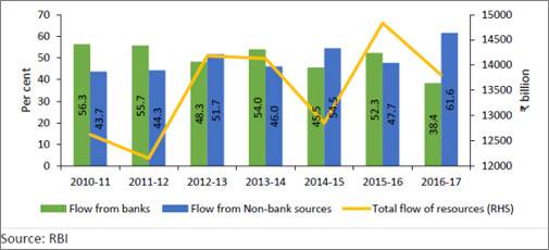 Historically, the banking sector has played a preeminent role in facilitating flow of resources to the commercial sector in India. However, this is currently under challenge as credit disintermediation, bypassing banking channels, has attained a critical mass, highlights a study by the Reserve Bank of India. In the year 2011, the share of bank loans in credit to the commercial sector was around 56 per cent, followed by a share of 44 per cent by the non-bank sources of credit, which includes commercial paper, corporate bonds and external commercial borrowings. Interestingly, in 2017, the trend saw a reversal - the banks' share plummeted to around 38 per cent translating into a rise in the share of non-bank sources to 62 per cent.
