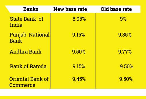 Yesterday, three public sectors banks- State Bank of India (SBI), Andhra Bank and Bank of Baroda lowered their base rates for borrowers. The announcement has come days ahead of monetary policy announcement by Reserve Bank of India (RBI) and will become effective from Oct 1.