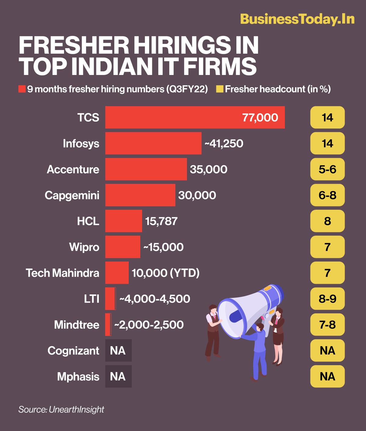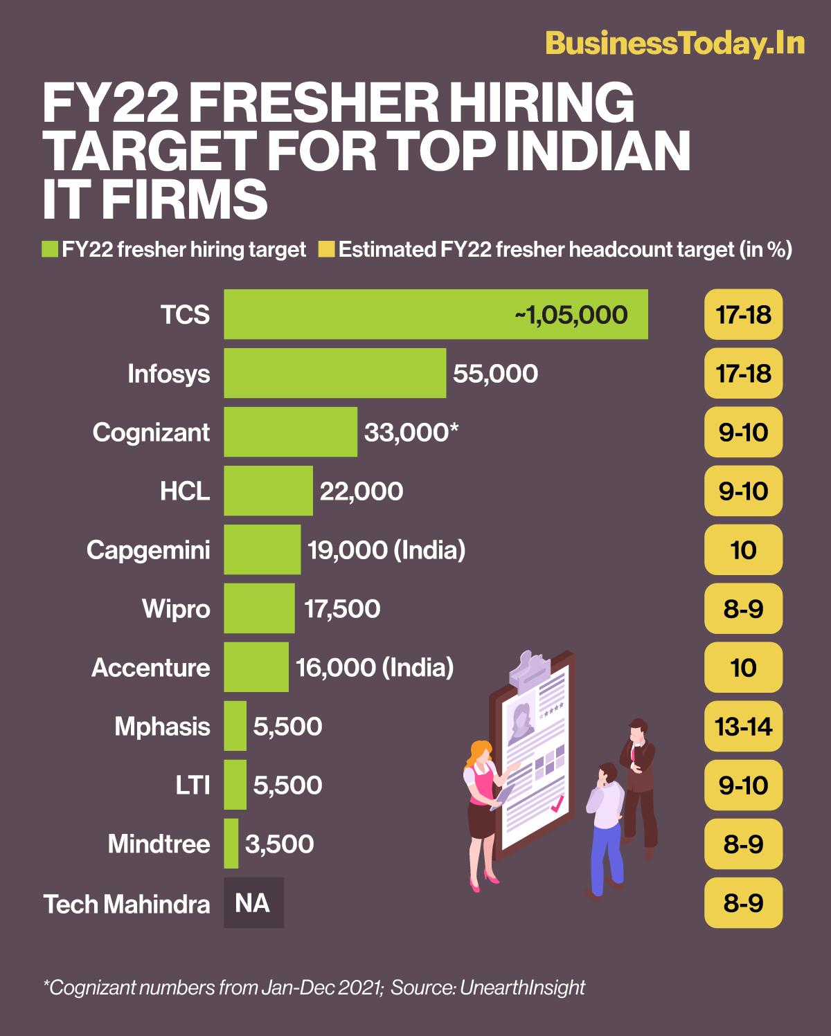 Meanwhile, the IT Industry Q3 Insights and FY22 Forecast report stated that the IT services industry will hire around 350,000-360,000 freshers by over 30 IT services firms in FY22, accounting for 14-18 per cent of freshers in total headcount.