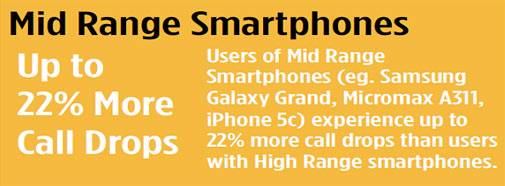 "The type, version and operating system significantly impacts the call drop experience of smartphones. Since awareness of this is low among users in India, mobile operators must compensate for this by designing their networks for the lowest performing smartphones that proliferate the market," says the report.