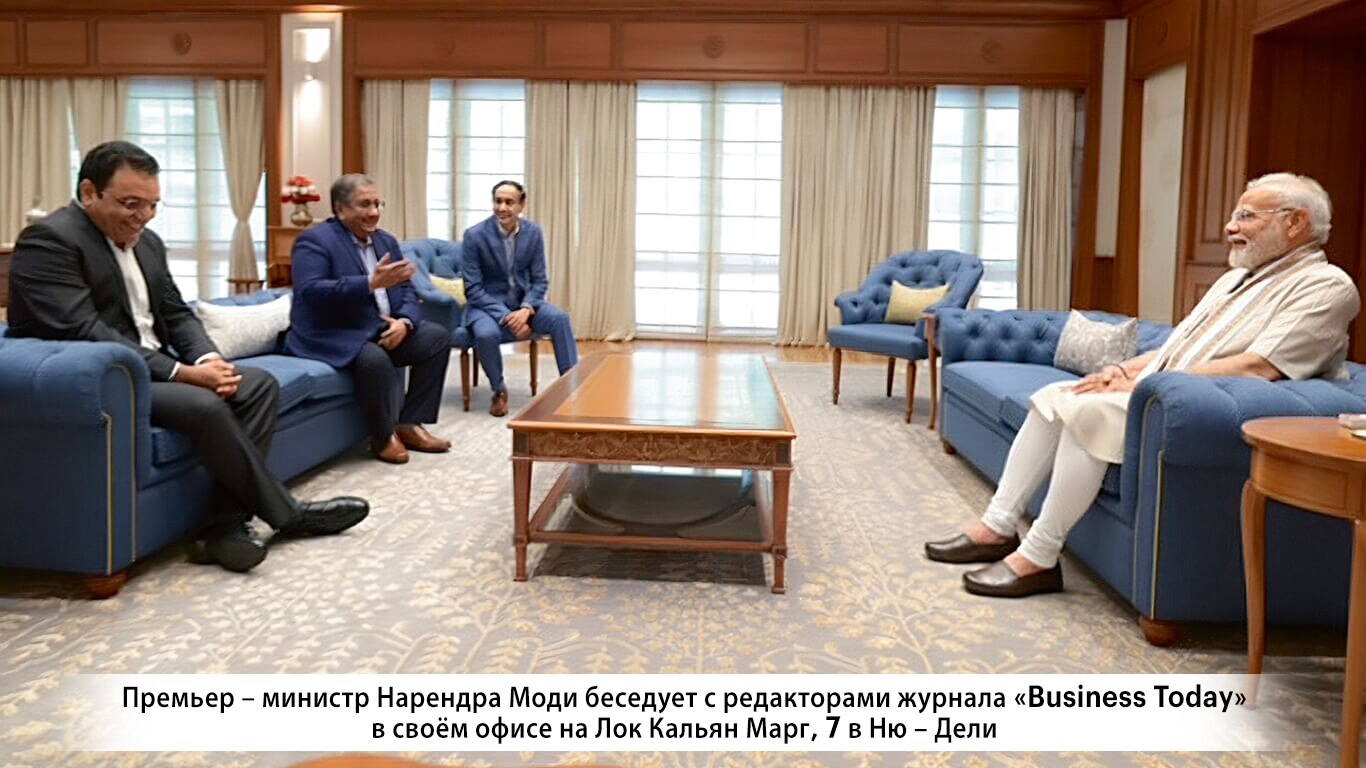 В эксклюзивном, более чем 40-минутном общении с журналистами «Business Today» в своем огромном, со вкусом обставленном офисе в доме на Лок Кальян Марг, всего за несколько дней до саммита лидеров G20, Моди, безукоризненно одетый и очень непринуждённый, увлечённо рассказывает о возможности, которой обладает Индия, чтобы помочь решить проблемы, вызывающие глобальную озабоченность, то, как цифровая общественная инфраструктура страны стала предметом внимания всего мира, Индия как потенциальный центр производства и многое другое.