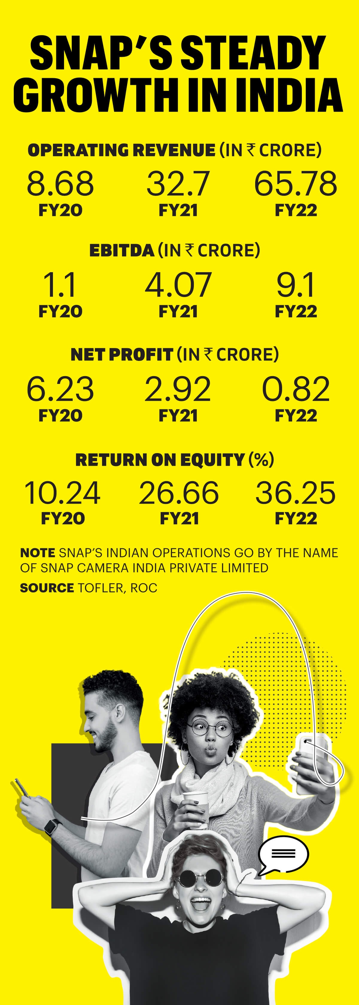 Asia is home to the world’s youngest population, while the core target for the multimedia messaging platform developed by Snap Inc. is the 13-34 age group; and India has a growing population in that particular demographic, and according to experts, is still an underpenetrated market in terms of social media. And India’s community of Snapchatters—those who use the platform—is growing. Snap, which had entered the country in 2019, announced last year that it had crossed the milestone of more than 200 million monthly active users. What is of note is that “almost all of that growth has taken place in 2-2.5 years in the face of very intense competition” says Ajit Mohan, the company’s President (Asia Pacific), sitting in the company’s low-key office at Mumbai’s Bandra Kurla Complex. Snap reported that its operating revenue from the India operations doubled from Rs 32.7 crore in FY21 to Rs 65.78 crore in FY22, according to data from the Registrar of Companies and business research platform Tofler.