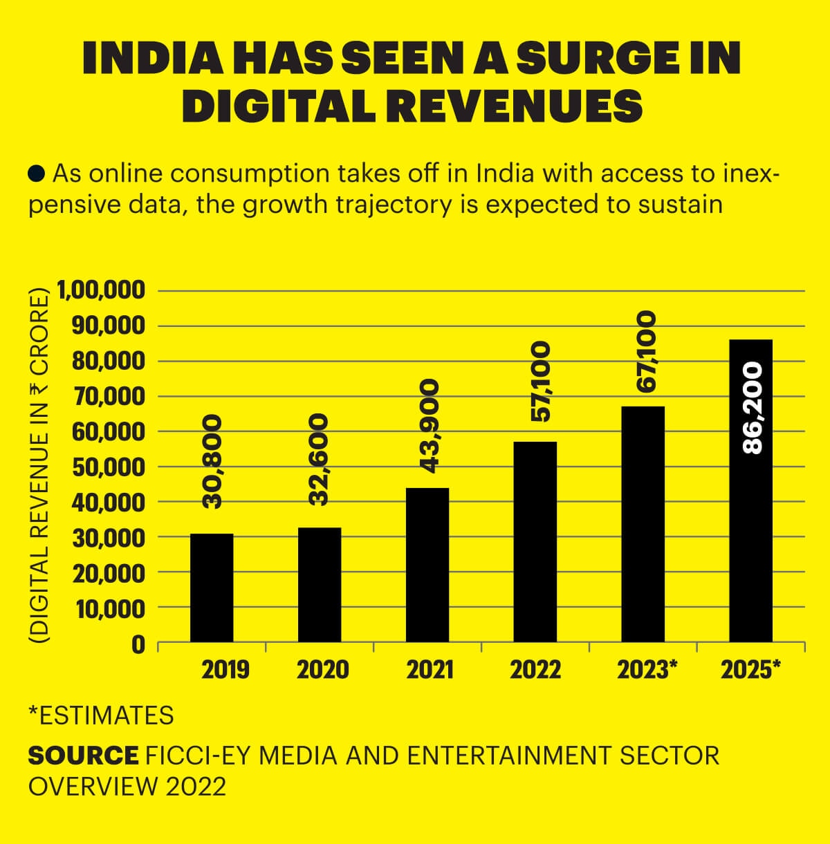 The surge in digital advertising revenue in India has sustained on a large base. For 2022, it stood at Rs 57,100 crore from Rs 30,800 crore in 2019, according to the FICCI-EY Media and Entertainment Sector Overview 2022. Today, the lion’s share is with Google at just under Rs 25,000 crore, with Amazon India accounting for over Rs 4,000 crore, and Flipkart around Rs 2,000 crore. Industry executives insist the market size could be a lot more since advertising from smaller entities is not necessarily accounted for.