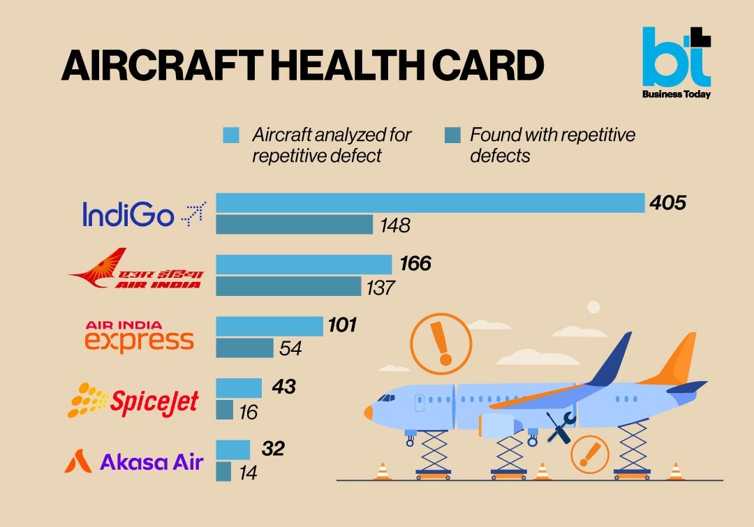 According to data provided by the Ministry of Civil Aviation, the highest number of defects were found in Air India’s fleet, followed by Air India Express and IndiGo. The situation was similar even with SpiceJet and newcomer Akasa, as half their fleets were reported to have had repeated defects.