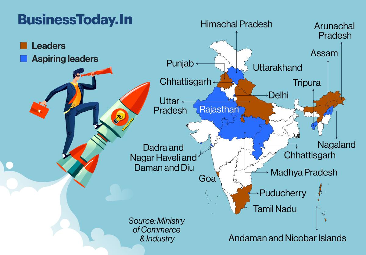 Eleven states like Rajasthan, Chhattisgarh, Himachal Pradesh, Madhya Pradesh, Delhi, Chandigarh, Nagaland, Dadra and Nagar Haveli and Daman and Diu, Manipur, Tripura and Puducherry made it to the aspiring leaders category.