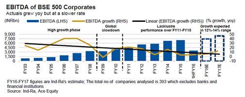 The report expects the EBITDA growth to be slightly ahead of nominal GDP growth in FY17, but a sustained improvement to post global financial crisis period growth levels is likely to take time.