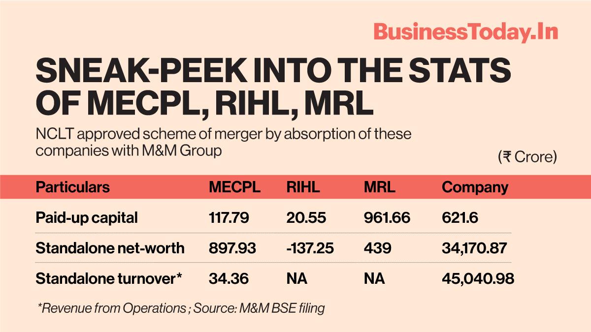 This scheme has become effective from April 29, according to a latest exchange filing by Mahindra & Mahindra.National Company Law Tribunal (NCLT) has approved the scheme of merger by absorption of Mahindra Engineering and Chemical Products Limited (MECPL), Retail Initiative Holdings Limited (RIHL) and Mahindra Retail Limited (MRL) with the Mahindra and Mahindra (M&M) Group and their shareholders.