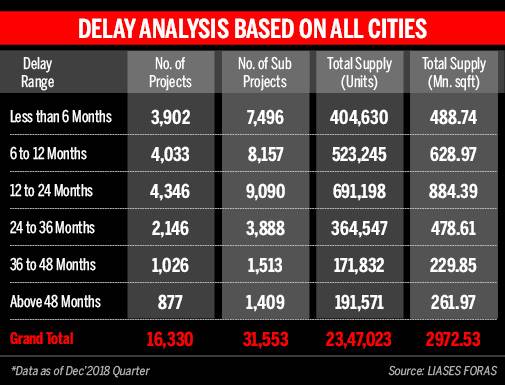 Of the total 16,330 projects facing delay, 877 have been late by over four years while the maximum projects (4346) fall in the 12 to 24 months delay bracket (See Table). "Most of the delayed projects should be from the pre-RERA days. Many of these projects are caught in a situation where the projects are no longer financially feasible. Other reason for delay is lack of demand, lack of capital and high interest rates," Oberoi said.