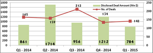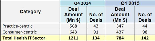 The healthcare IT sector raised $784 million in 142 deals during January-March this year compared to $1.2 billion in 134 deals in the previous quarter globally.