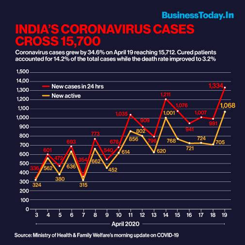 There are 15,712 cases in India, with 12,974 active cases. The number of deaths have crossed 500 in the country. Maharashtra is the worst-impacted with 3,651 cases.