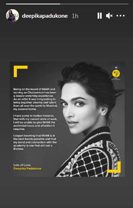 Deepika took over the position in 2019, replacing filmmaker Kiran Rao. The Chhapaak actor further mentioned in her post that she couldn't give full attention to MAMI due to her work commitments and that she won't be able to give the festival "undivided focus".