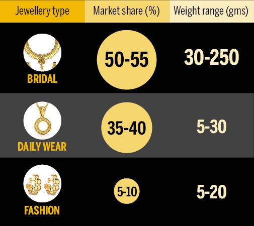 Bridal jewellery dominates the market, with more than half of jewellery sold falling in that category.