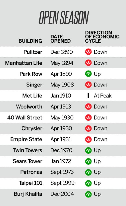 To be sure, the tower had been completed two years back but bureaucratic delays had prevented it from opening its doors, quite literally, to tenants. While the economy may still not be out of the woods, it certainly negates Andrew Lawrence's skyscraper index theory - of ultra-tall buildings being harbingers of economic gloom.