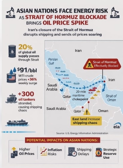 Governments across Asia are closely monitoring the situation and reviewing contingency plans, yet the Strait of Hormuz remains difficult to replace due to the sheer volume of oil that flows through it.