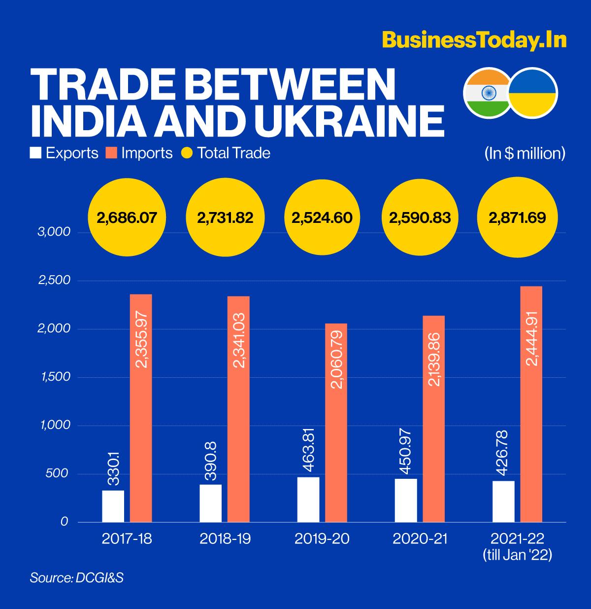 While the foreign trade between India and Russia stood at $10,826.69 million from 2021-22 (till January), the foreign trade between India and Ukraine was worth $2,871.69 million during the same period