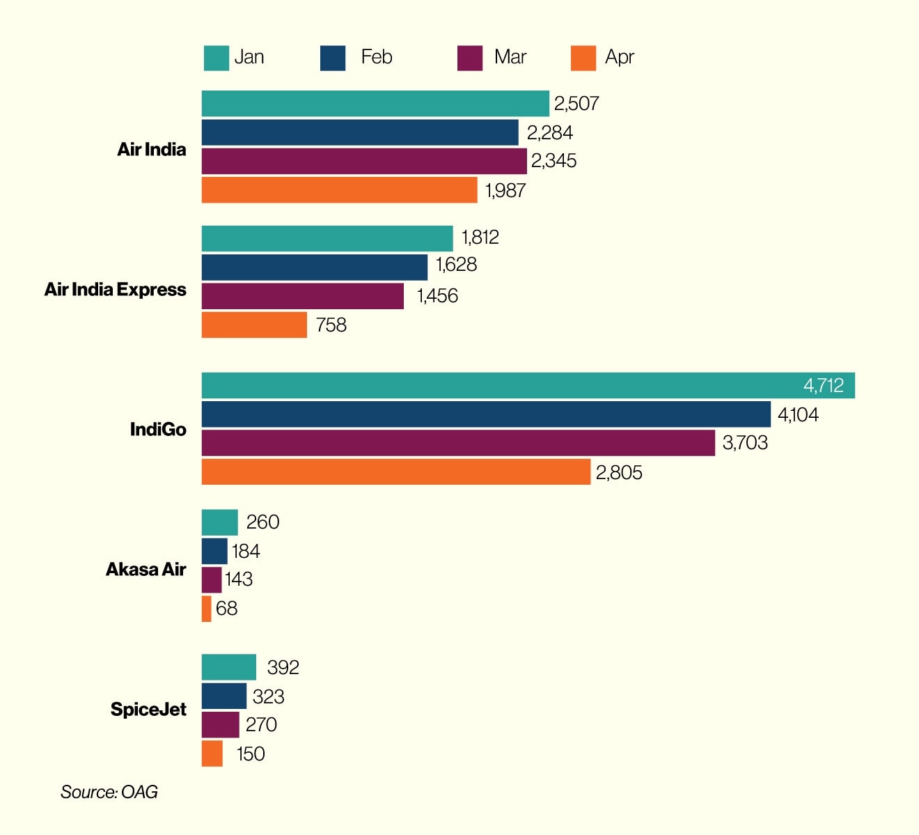 The international frequency of aircraft by various airlines saw a drop in March and April, with continued airspace restrictions over the conflict zone in West Asia.Indian airlines have been hit by the ongoing West Asia conflict due to airspace restrictions. Air India Express and SpiceJet are the worst impacted as they deploy most of their capacity to the Gulf.