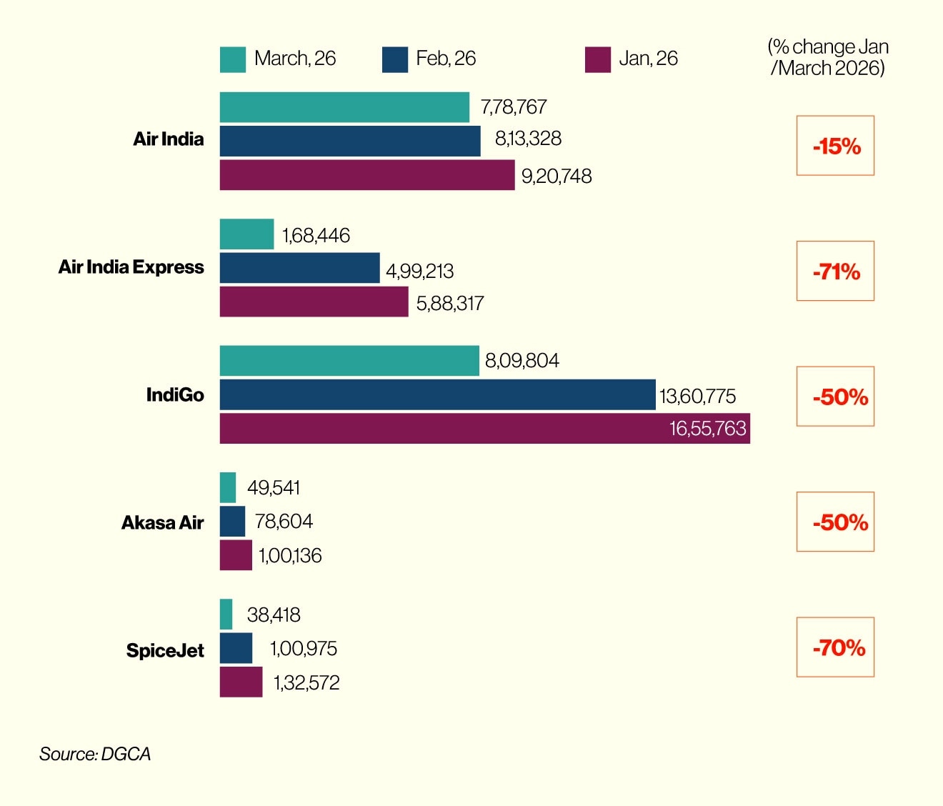 The numbers dropped drastically in March as airspace restrictions were placed over the Gulf. This is likely to impact the revenue of Q4FY26 with the worst March numbers in the past few years.