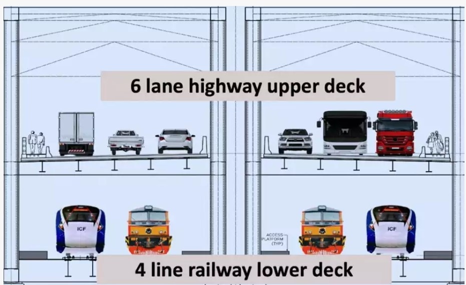 The lower deck of the bridge will accommodate four railway lines, while the upper deck will have a six-lane highway. This infrastructure project will connect the Northern, Eastern, and Western zones, leading to significant savings of Rs 630 crore per year on diesel imports, equivalent to around eight crore litres.