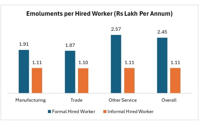 The data stated on an average, a formal hired worker earned Rs 2.45 lakh per annum as compared to Rs 1.11 lakh earned by informal hired worker.