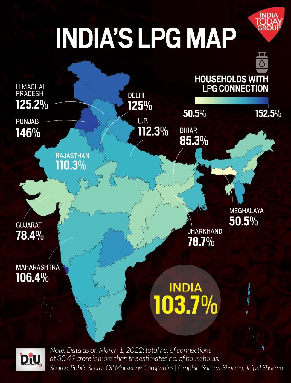 Oil marketing companies sell 14.2 kg cylinders to domestic households at the same price as the open market. The government also offers subsidies on 12 such cylinders to each household in a year. This subsidy is transferred directly to the bank accounts of the beneficiaries. LPG cylinder prices are determined by factoring in international benchmark rate of LPG and exchange rate of US dollar and Indian rupee.