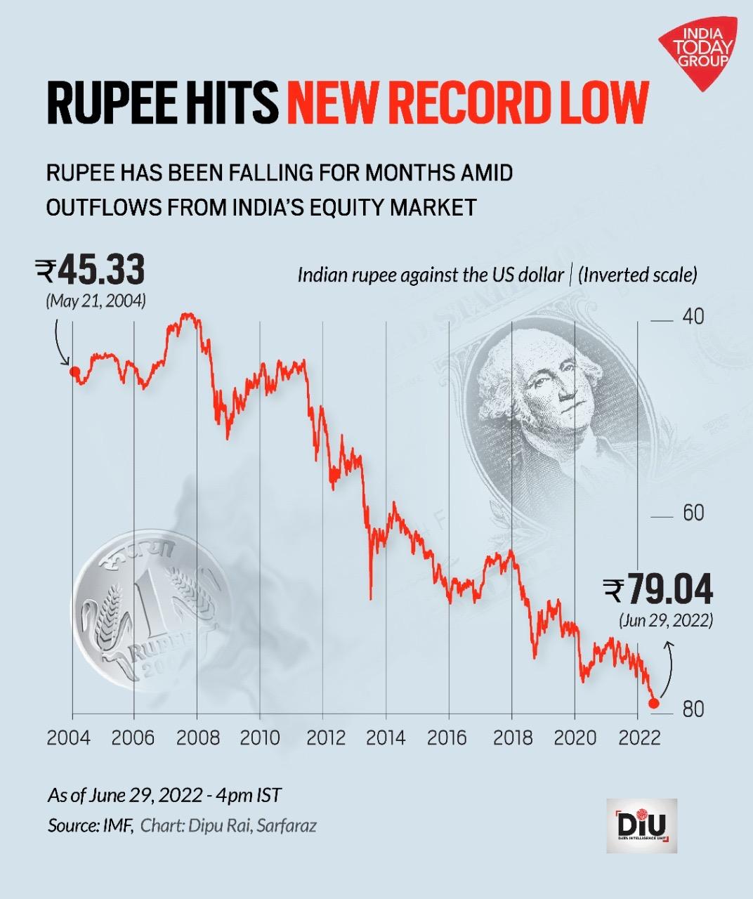 On Tuesday, the rupee plunged by 48 paise to close at the record low of 78.85 against the US dollar.