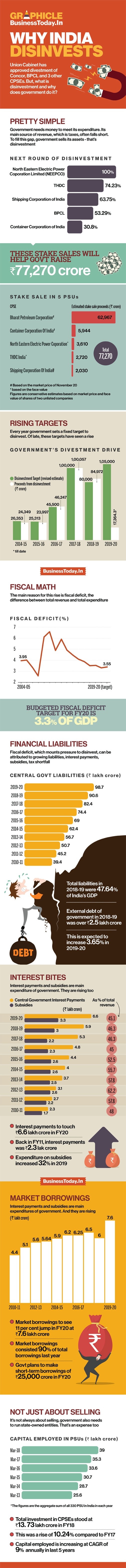 This BusinessToday.In infographic looks at the increasing financial burden on the government, which has forced the government to sell