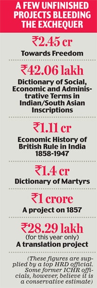 The ICHR's oldest, costliest and the most controversial project continues to bleed the public exchequer. It provoked Arun Shourie to write Eminent Historians in 1998, and he accused ICHR of spending Rs 1.70 crore on the project. This project, which is as old as ICHR itself, is yet to be completed, though its apologists often cite AB Vajpayee's six-year reign - when the project was suspended - to justify the delay.