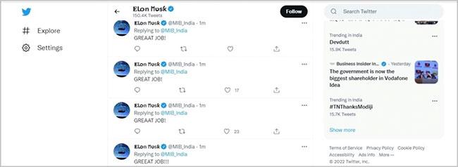 The Ministry of Information and Broadcasting's Twitter account has been seemingly compromised. The handle has been posting "great job" for some time.The Ministry of Information and Broadcasting's (I&B ministry)Twitter account was briefly hacked on Wednesday (January 12). The hackers renamed the handle as 'Elon Musk' and tweeted "great job" for some time along with some malicious links from it.