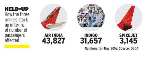 But the most telling problem is inadequate infrastructure. For instance, Delhi has just three runways, and airlines have been demanding one more for smooth functioning during peak hours. The fourth runway will be ready by 2020. DGCA data shows Mumbai is the worst in terms of on-time performance (OTP) for all airlines. Air India's OTP, for instance, stood at 66.5 per cent in May. The proposal to build an airport in Navi Mumbai is pending since 1997.