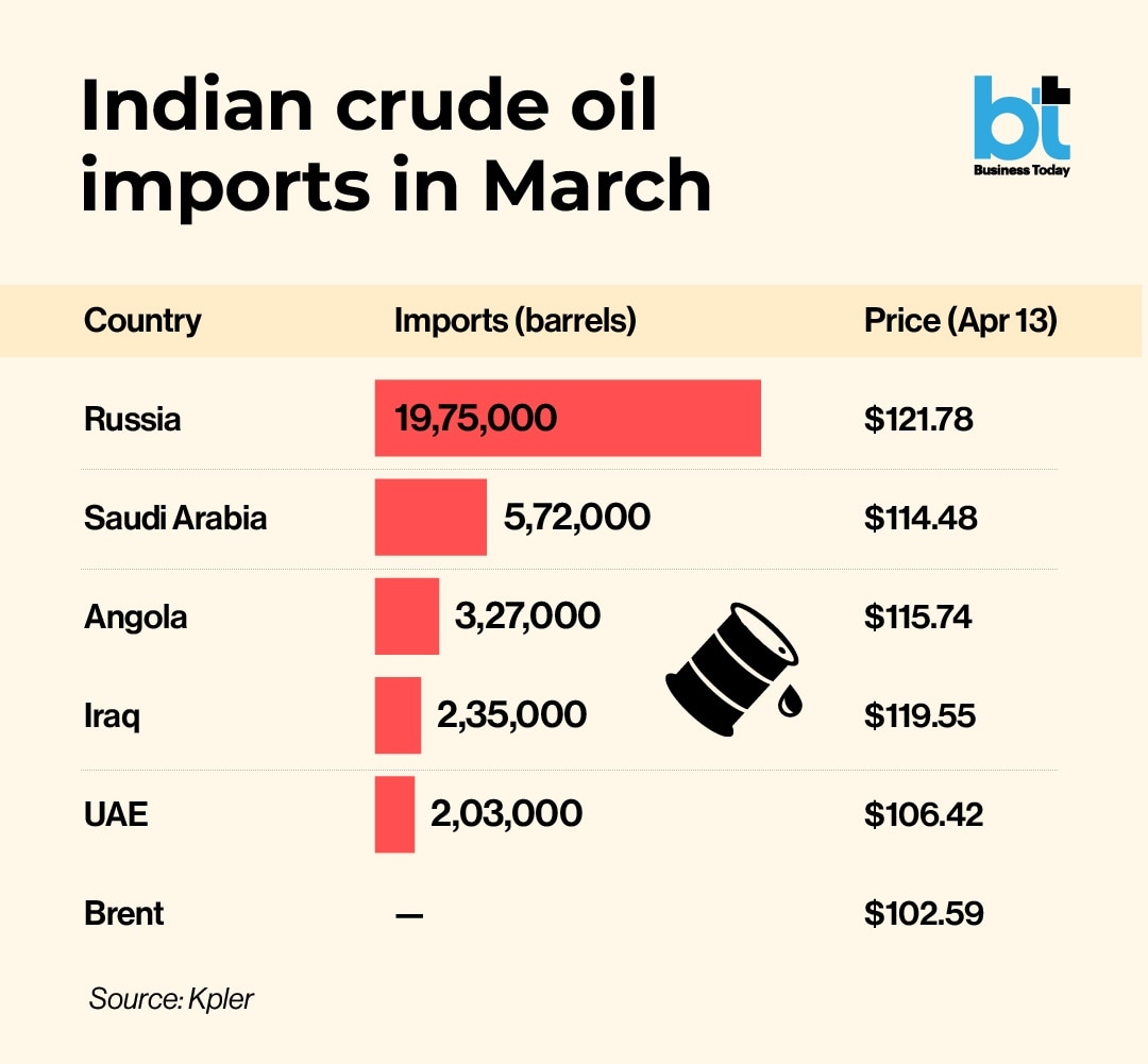 In March, just 16% of India’s crude imports were from the Gulf states, down from nearly 50 per cent in February.