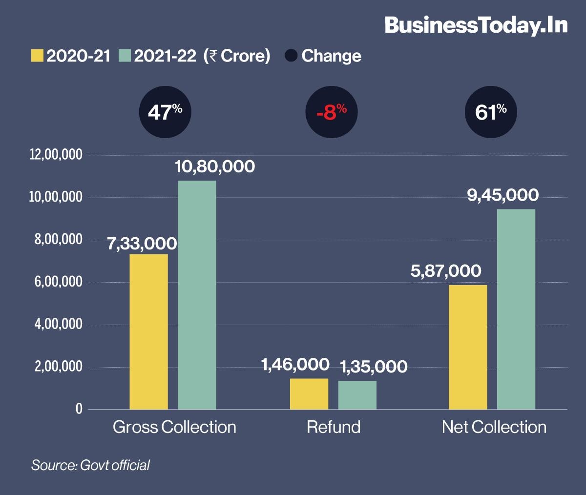 Govt's direct tax collections touch 85% of FY22 Budget target