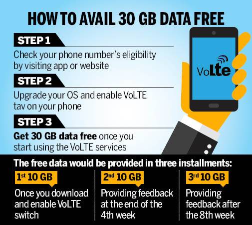 The data will be offered to customers across three stages -- the first 10 GB on downloading and enabling the VoLTE tab, the second installment will be provided after the users provide their feedback at the end of four weeks, and another 10 GB will be top loaded after eight weeks, once a detailed feedback is shared with the company.