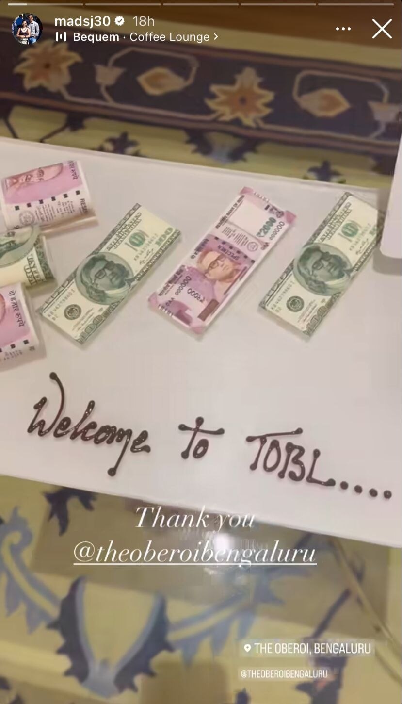 Jain shared the details about their welcome through a video on her Instagram story. She also thanked The Oberoi for this gesture.