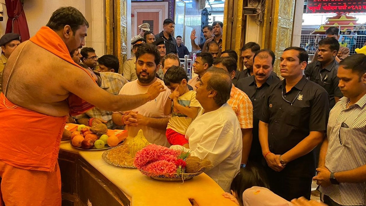 RIL chairman Mukesh Ambani was at the famous Siddhivinayak Temple along with his son Akash Ambani, daughter-in-law Shloka Mehta and his grandson, Prithvi Ambani ahead of LSG vs MI IPL matchBillionaire Mukesh Ambani on Wednesday visited the Siddhivinayak Temple along with Akash Ambani's wife, Shloka Ambani, and his grandson, Prithvi Ambani hours before five-time champion Mumbai Indians (MI) will take on Lucknow Super Giants (LSG) in the IPL Eliminator match to be played at MA Chidambaram Stadium in Chennai.