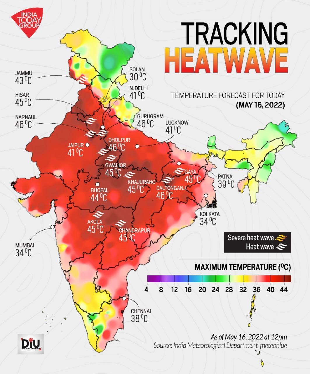 A severe heatwave is declared if the maximum temperature crosses the 47-degree Celsius mark.