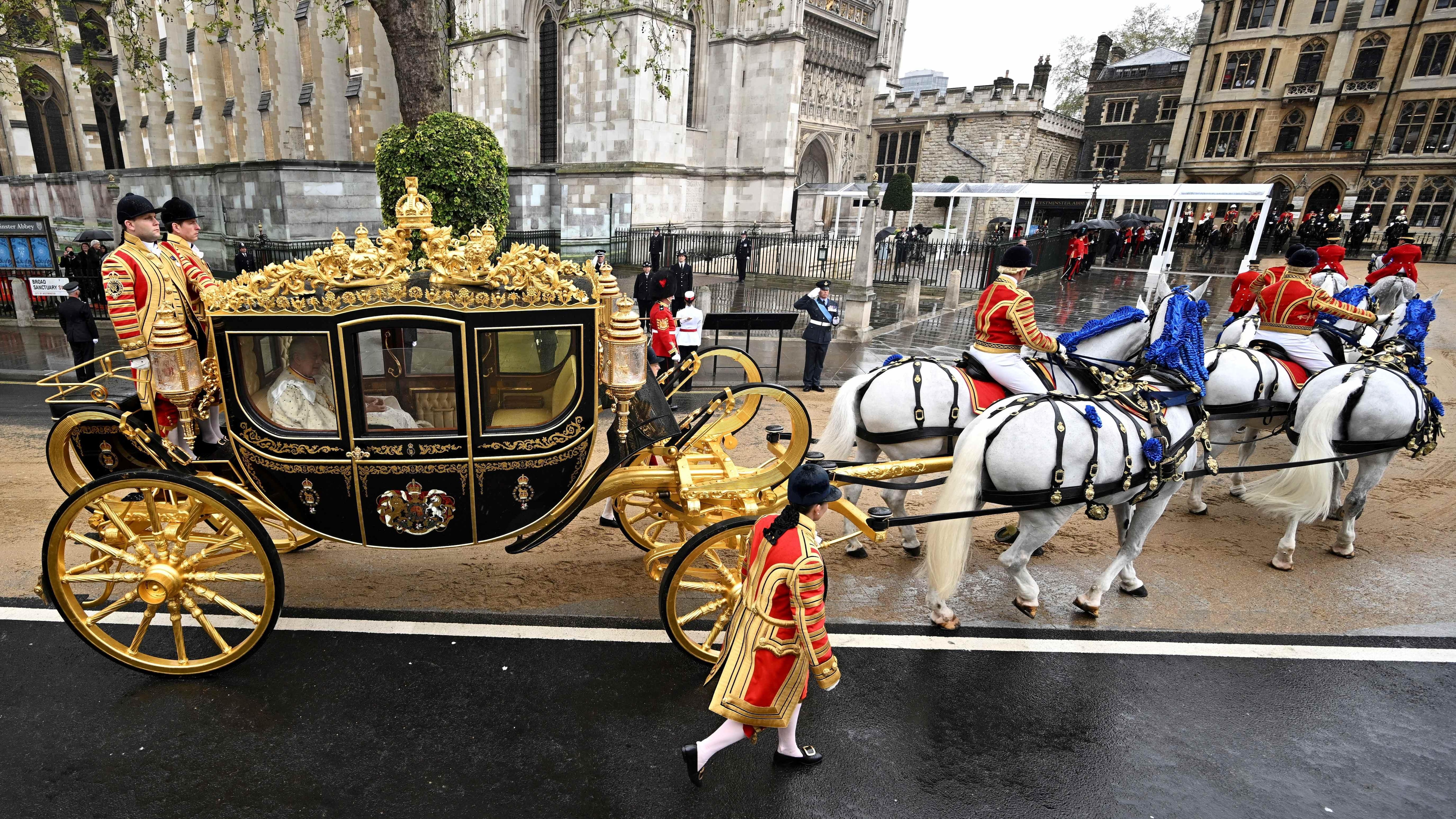 The bells of Westminster Abbey are rung as King Charles III leaves the building. The Coronation Procession will be underway shortly.