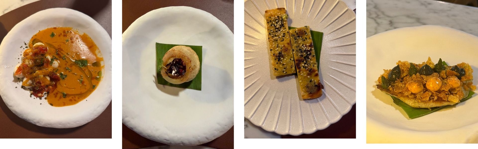 We began with Mango Salsa Puris, a playful opener that immediately establishes Maya’s confidence. Crisp pooris cradle fermented mango salsa, finished with Spanish olive oil, sea salt, and smoked paprika. The flavours land in quick succession. Sweet, sour, smoky, then clean. It tastes nostalgic and unfamiliar at once, which becomes a recurring theme throughout the meal.