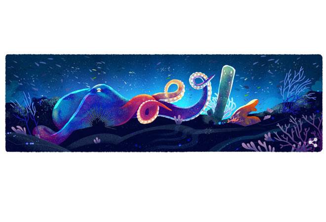 In Friday's doodle, the ubiquitous Google logo morphs to depict, in turn, a polar bear in the tundra, a red fox in the forest, an elephant in the grasslands, a tortoise in the desert and an octopus in the ocean - with a different one appearing each time one visits the site's homepage, TIME online reported.